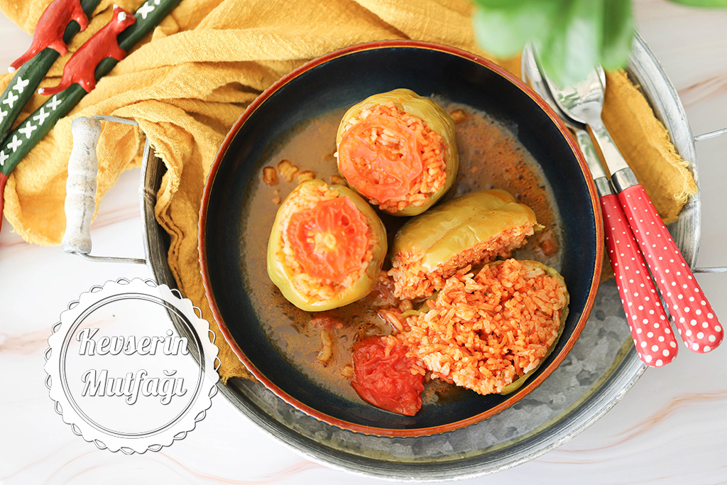 Fırında etsiz biber dolması yapımı fırında etsiz biber dolması. Yemeğin yapımı için gerekli olan malzeme listesi aşağıda yazılı olarak verilmiştir. 4 adet domates kabukları kapak olarak kullanılacak.