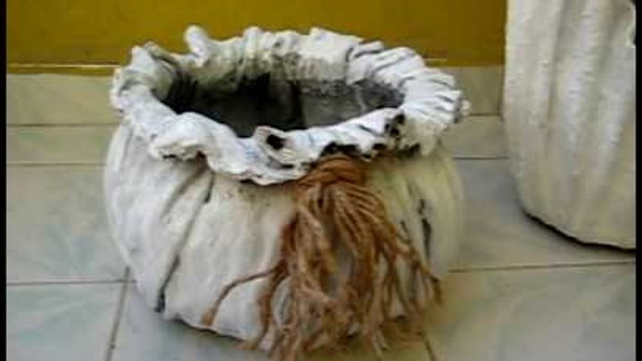Heykel saksı yapımı. Havludan beton saksı yapımı için öncelikle ince kum çimento ve su bir kova içerisinde karıştırılır. Beton saksı altlarına koruyucu keçe. Bu videoda yine çimentodan eldiven ve kumaş kullanarak harika bir beton saksı yaptım. Buddha büst heykel saksı yapımı.